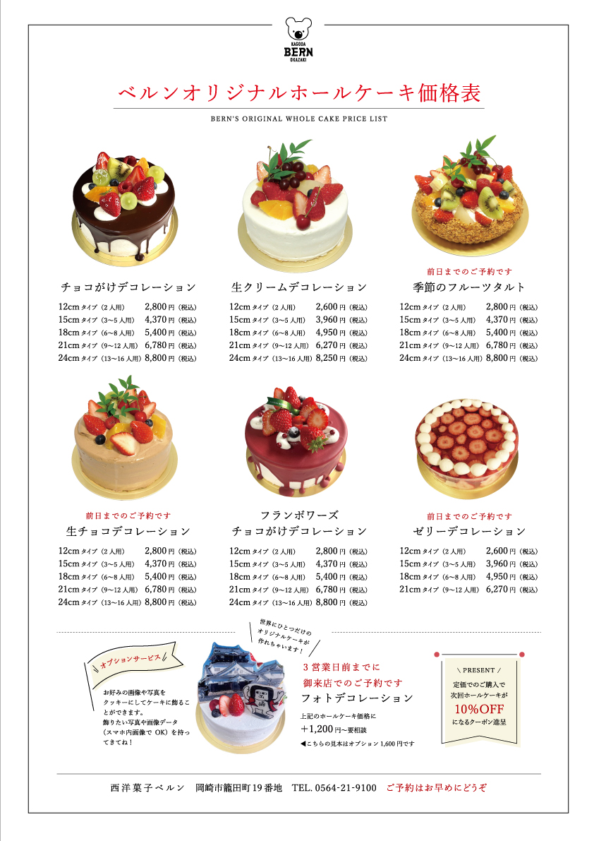 ・ ホールケーキ メニュー表(フォトデコレーションは3営業日前までに御来店での予約です) (2025-12-26)