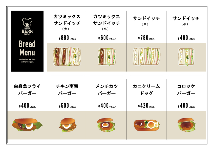 サンドウイッチ メニュー表